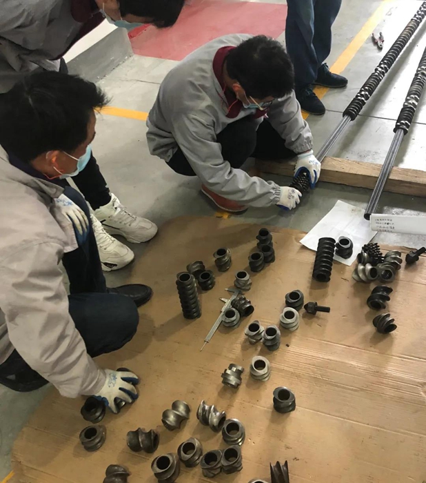 此次竞赛严格按照首研公司作业流程标准进行评比考核,分笔试和实际操作两个环节。笔试内容包括机器设备的理论知识和安全生产方面的意识两方面组成;实操包括设备开机和螺杆的组装等流程。
